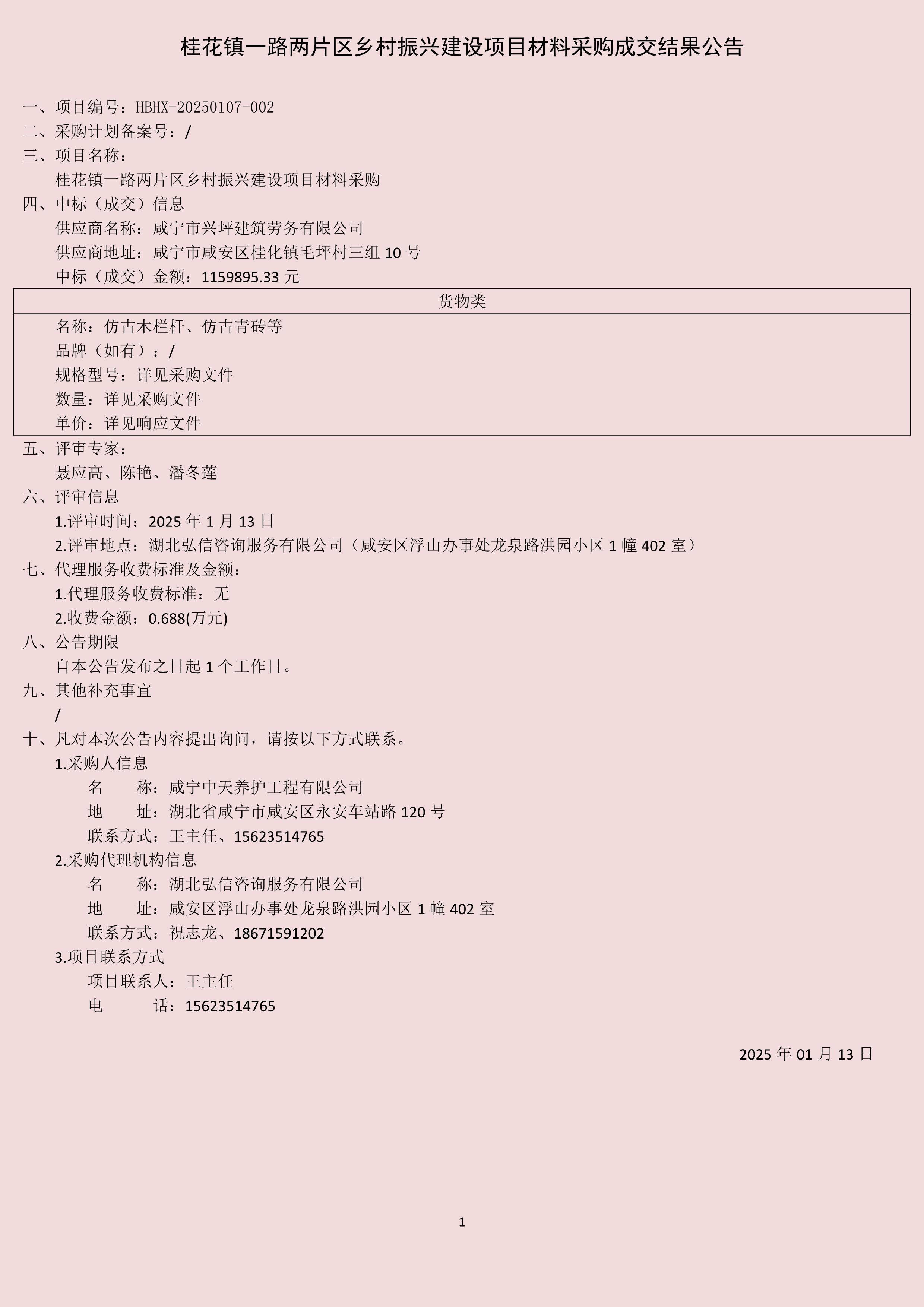 桂花镇一路两片区乡村振兴建设项目材料采购成交结果公告