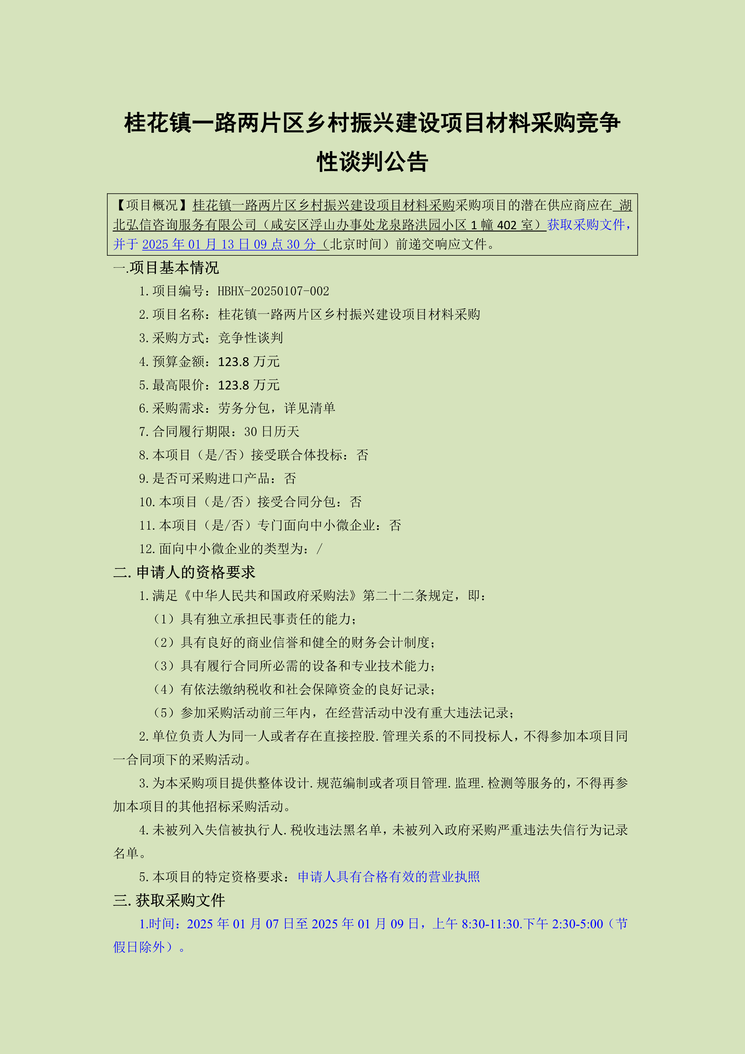 桂花镇一路两片区乡村振兴建设项目材料采购竞争性谈判公告