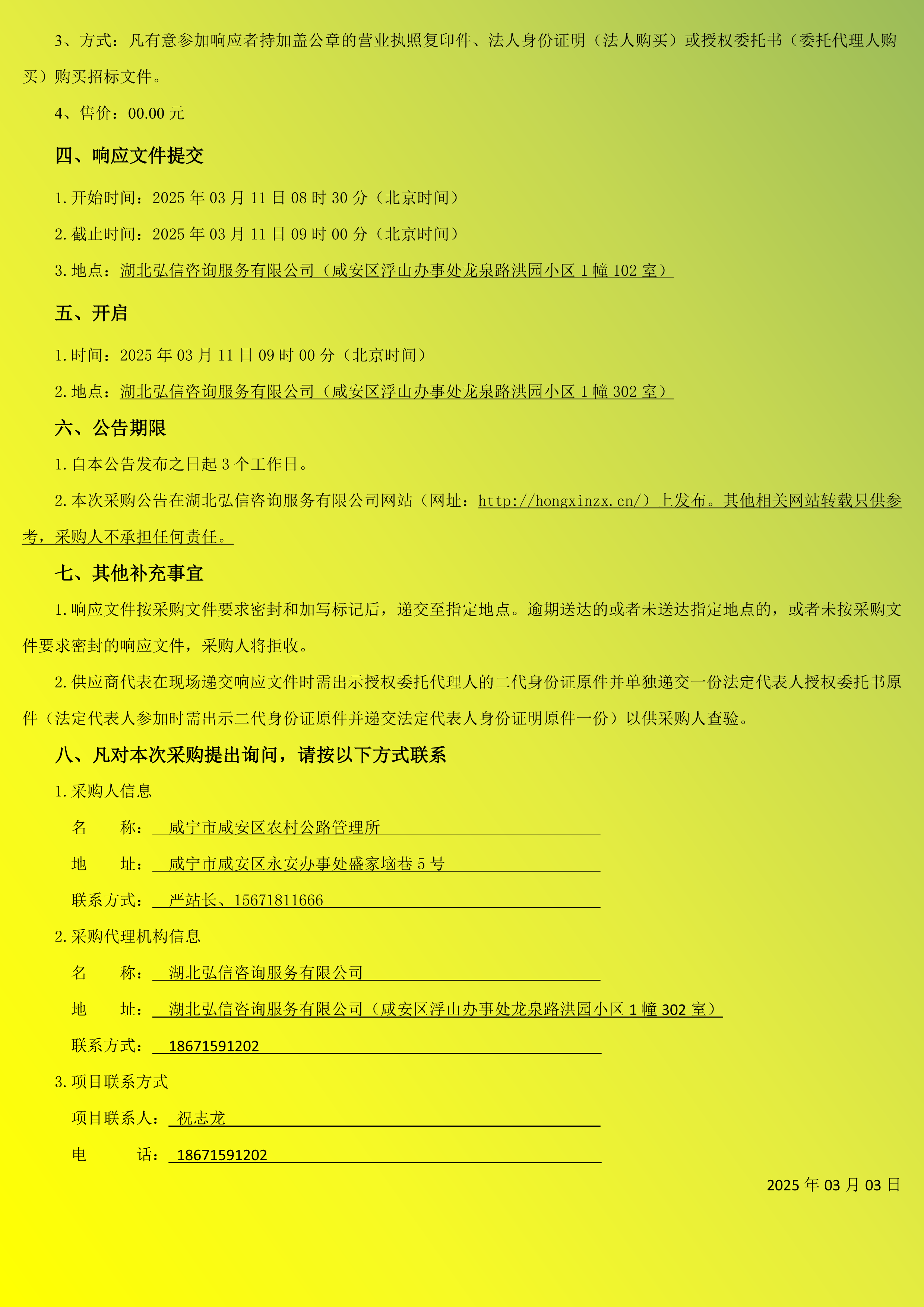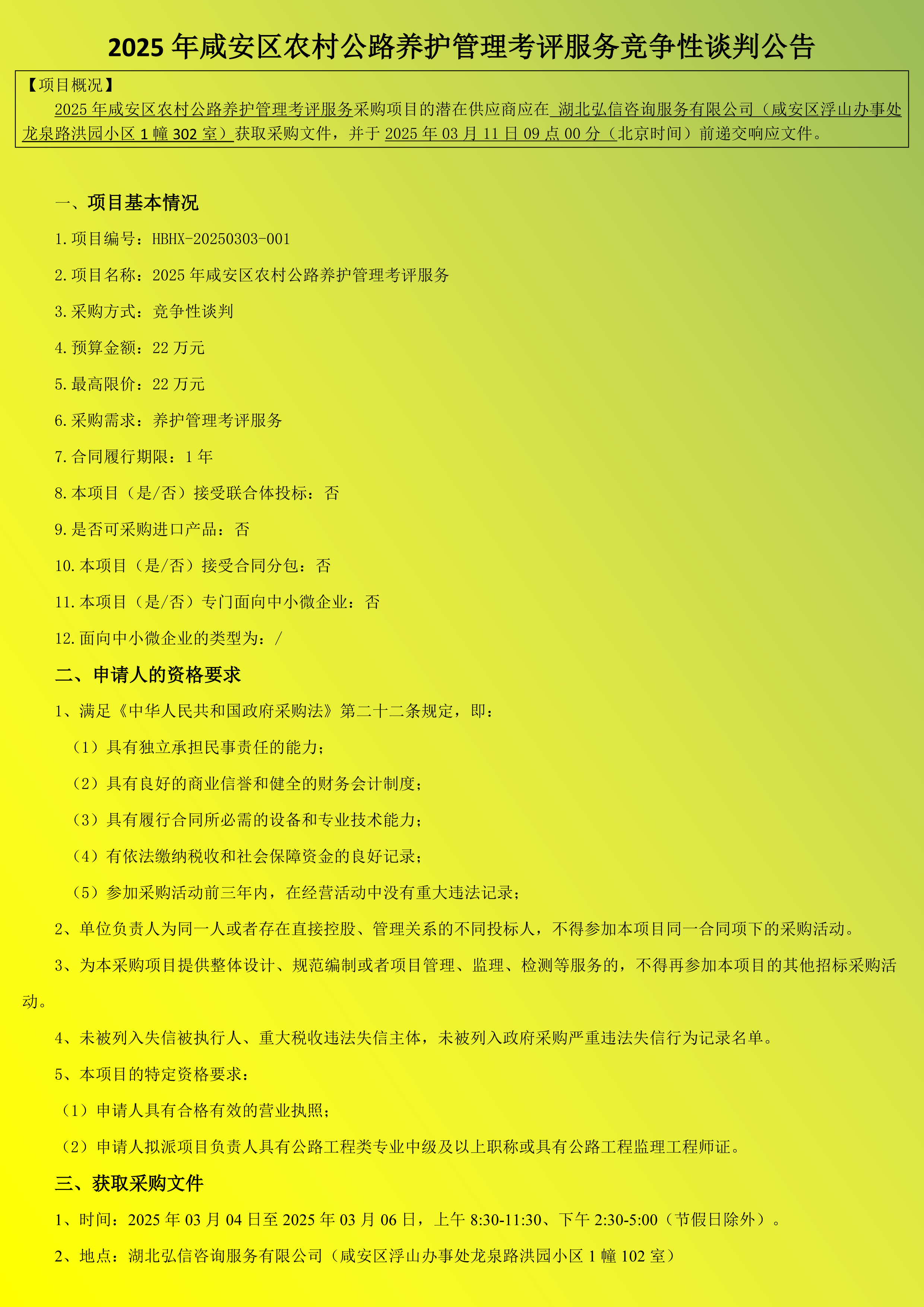 2025年咸安区农村公路养护管理考评服务竞争性谈判公告