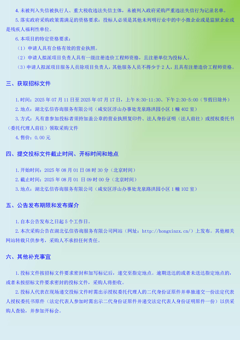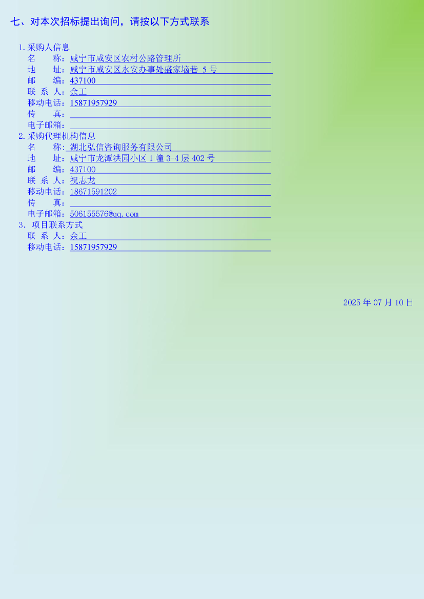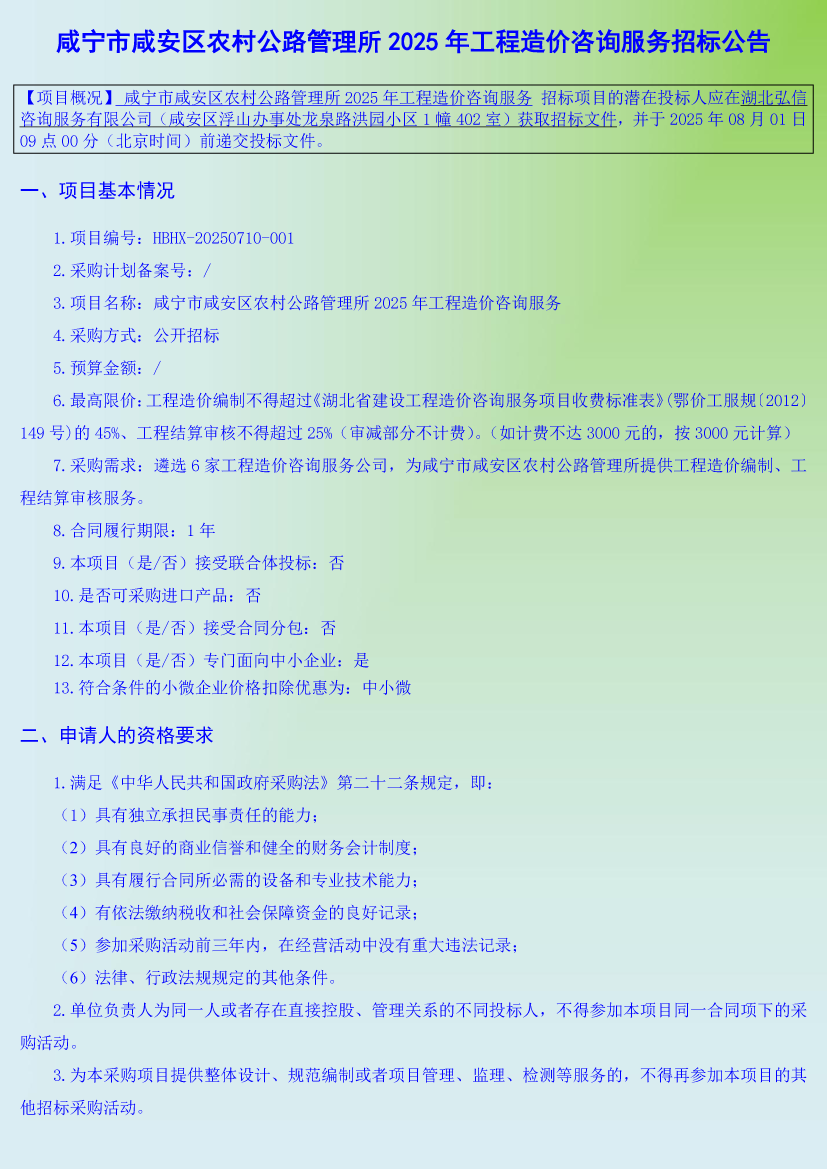 咸宁市咸安区农村公路管理所2025年工程造价咨询服务招标公告